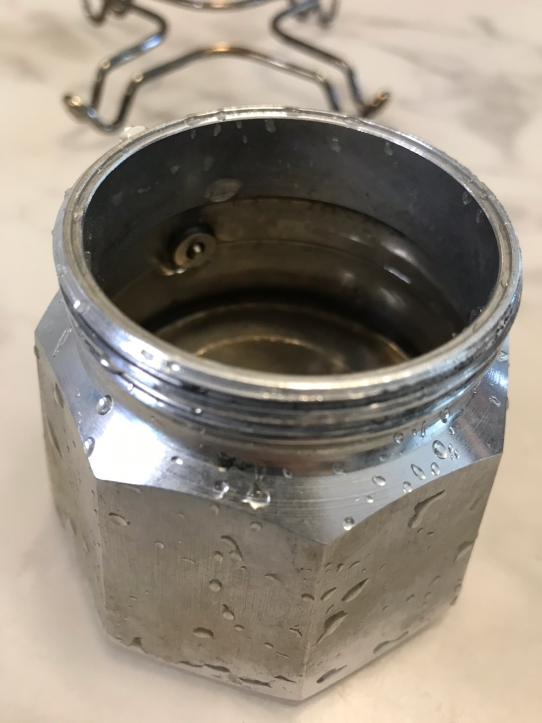 2. 커피 바스켓을 보일러에 넣어주고, 커피 바스켓에 원두를 넣어줍니다! 이때, 원두는 탬핑하기보다는 상단을 깎아 낸다는 느낌으로 다듬어주면 된다고 해요! 헉 저는 이때껏 비알레띠 모카포트 사용할 때 탬핑했는데 ㅜㅜ 꾹꾹 눌러주었는데 말이죠 ㅜㅜ 이제 다듬어주기만 해야겠어요 ㅜㅜ 원두를 소복하게 담은 뒤에 살살 깎아 내주는 게 좋다고 해요! 그리고 또 원두를 가득 채워야 하는데요! 원두를 가득 채우지 않으면 미분이 많이 생긴다고 하니 꼭 채워주세요!!