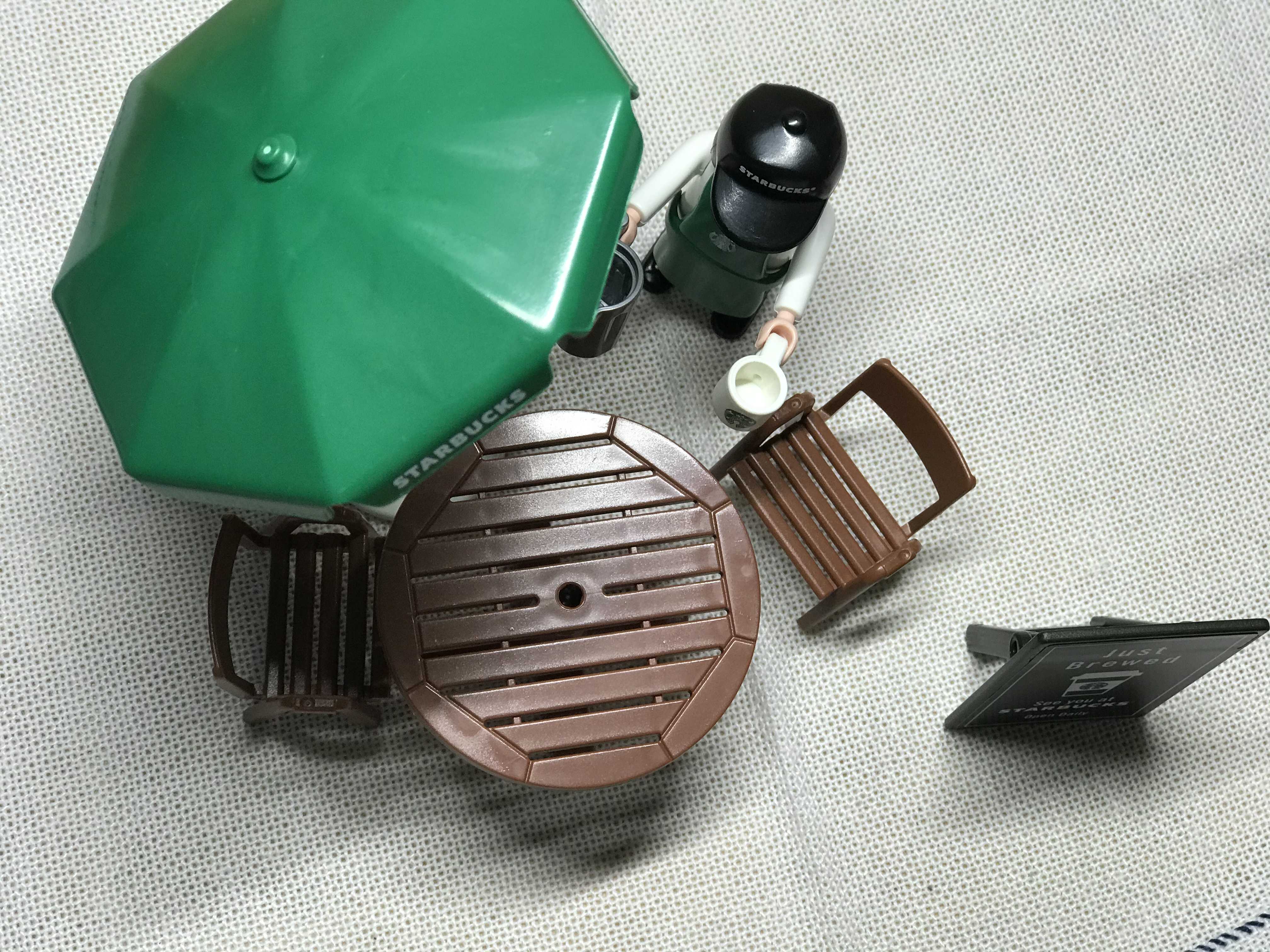 스타벅스 플레이모빌 퍼니처 세트에는 이렇게 파라솔도 있고요 ㅎㅎ 나무 테이블도 있고, 의자도 있어요! ㅎㅎ